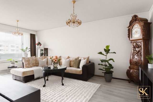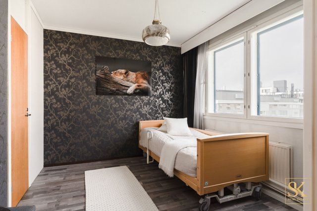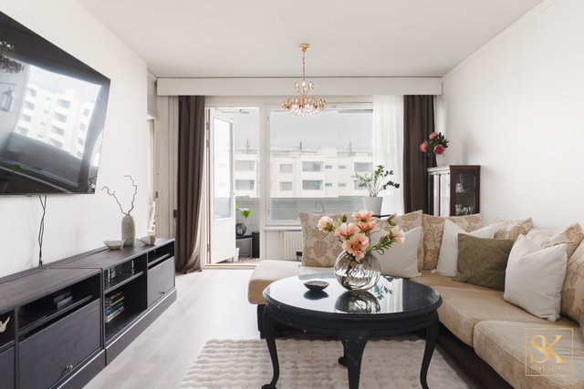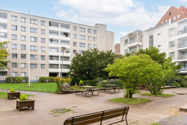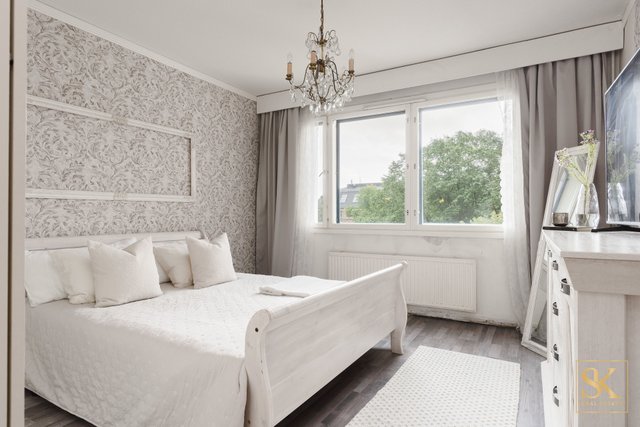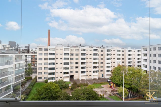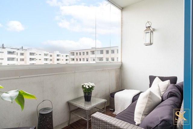 Länteen avautuva lasitettu parveke tarjoaa näkymän rauhalliselle sisäpihalle. Kaksi makuuhuonetta soveltuvat mainiosti perheelle, työtilaksi tai vierashuoneeksi, ja vaatehuone tuo runsaasti säilytystilaa arjen tarpeisiin.