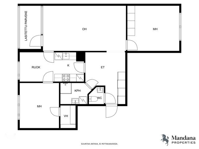 - Yhtiöjärjestyksen mukainen, Isännöitsijäntodistuksen mukainen, (Pinta-ala ei ole tarkistusmitattu ja todellinen pinta-ala voi olla suurempi tai pienempi, kuin ilmoitettu)