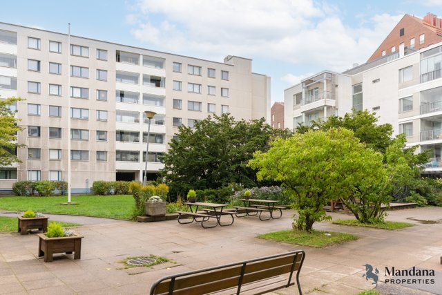 Sijainti on erinomainen. Kaikki palvelut, koulut ja päiväkodit löytyvät kävelyetäisyydeltä, raitiovaun kulkee aivan vierestä ja Kampin metroasemallekin kävelee hetkessä. Punavuoren trendikkäät ravintolat, kahvilat ja kivijalkaliikkeet ovat kulman takana.