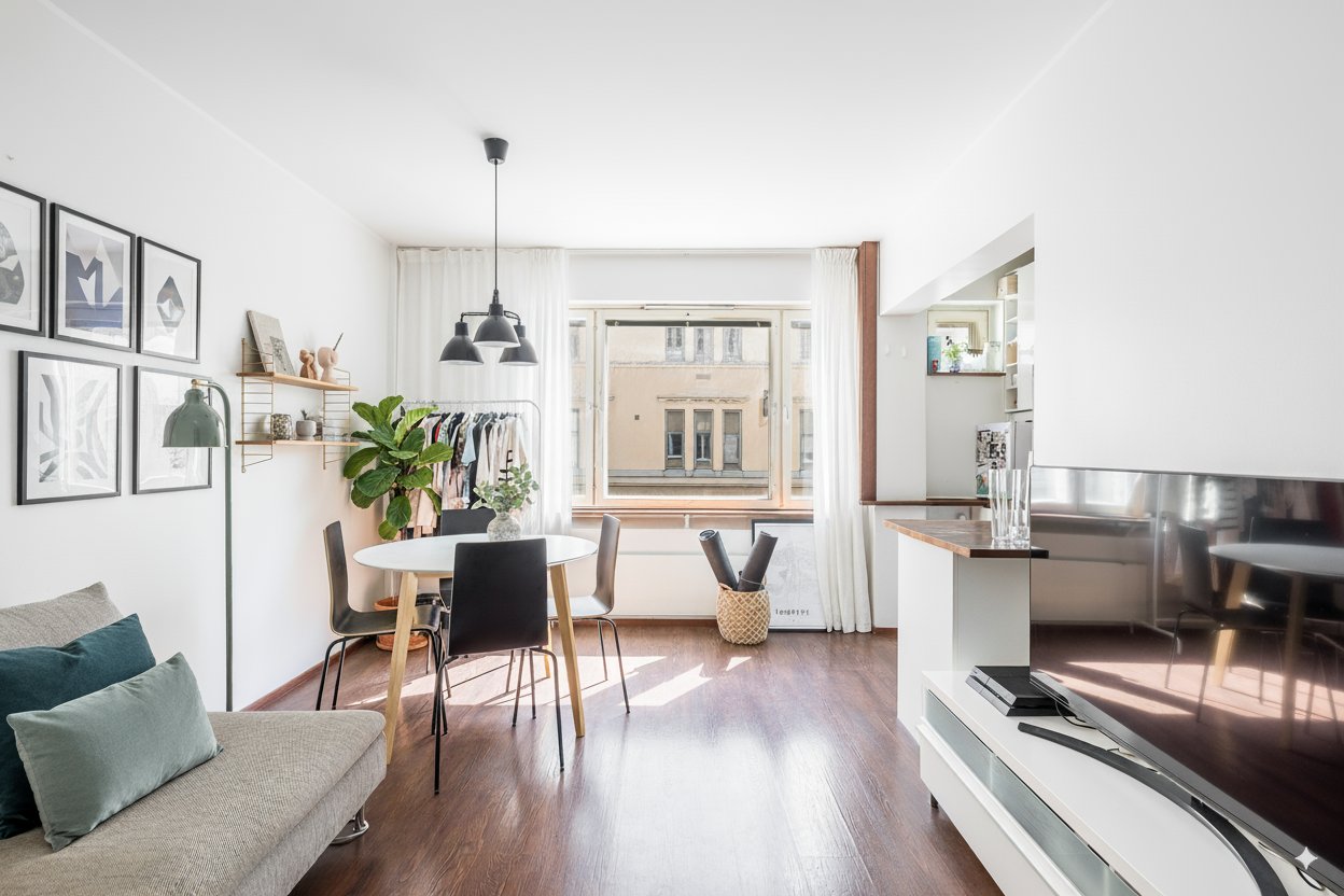 Kaksio Punavuoren sydämessä – valoisa koti hissitalon toisessa kerroksessa