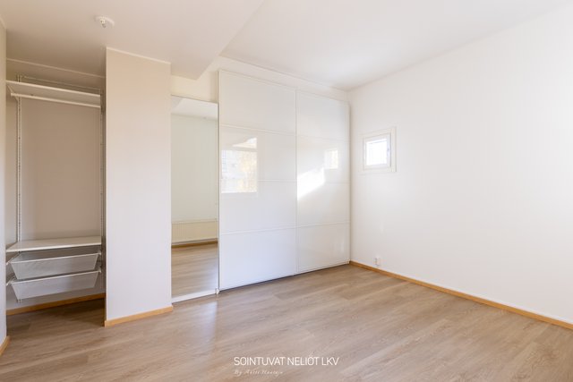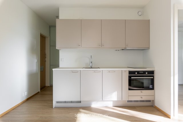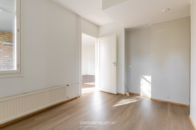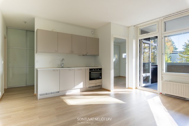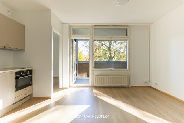 Kodin pohjaratkaisu ei jätä juurikaan toivomisen varaa. Olohuone ja avokeittiö muodostavat yhtenäisen ja viihtyisän kokonaisuuden, jonka jatkeena on varsin reilunkokoinen lasitettu eteläparveke. Keittiön tyylikäs värimaailma korostaa asunnon nykyaikaista ilmettä. Makuuhuone on mukavan väljä tarjoten myös hyvin säilytystilaa. Upean kokonaisuuden sinetöi juuri linjasaneerauksen yhteydessä uusittu moderni kylpyhuone.