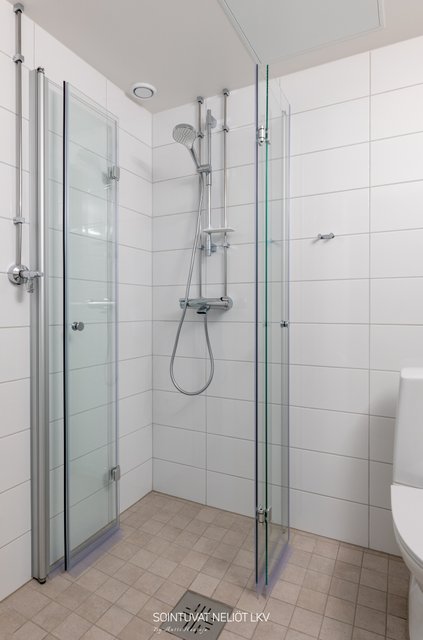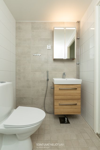 - Kylpyhuone/WC-tila, joka uusittu juuri taloyhtiön toimesta linjasaneerauksen yhteydessä.