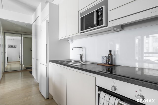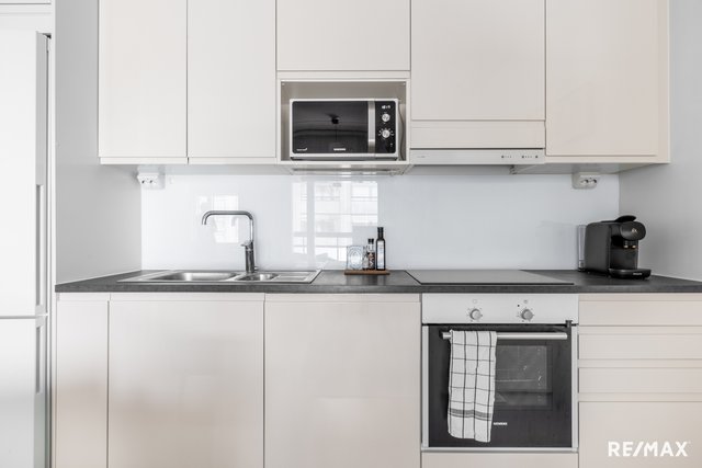 - Moderni, raikkaan vaalea avokeittiö, jossa laadukkaat Siemensin valkoiset kodinkoneet. Varustus: Jääkaappipakastin, integroitu astianpesukone, kalusteuuni, liesikupu, keraaminen liesitaso. Työtasot laminaattia, parkettilattiat.