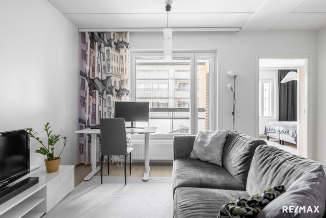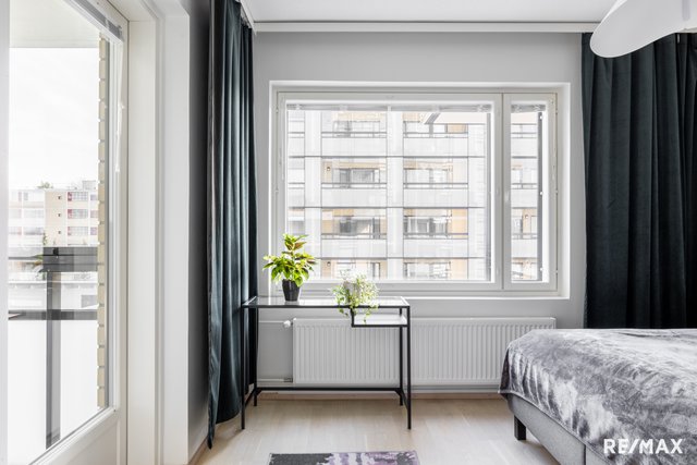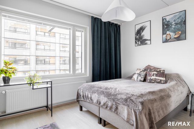 Huoneiston pintamateriaalit ja värimaailma ovat ajatonta ja harmonista. Huoneiston pohjaratkaisu on moderni ja toimiva. Makuuhuoneeseen mahtuu parisängyn lisäksi myös työpiste ikkunan ääreen. Oma sauna tietysti kruunaa kokonaisuuden. Säilytystilaa on asunnon kokoon nähden runsaasti. Liukuovikaapistot eteisessä sekä makuuhuoneessa, ja keittiön yhteydessä lisäksi vielä täyskorkeat kaapistot. Unohtamatta huoneistokohtaista varastoa.