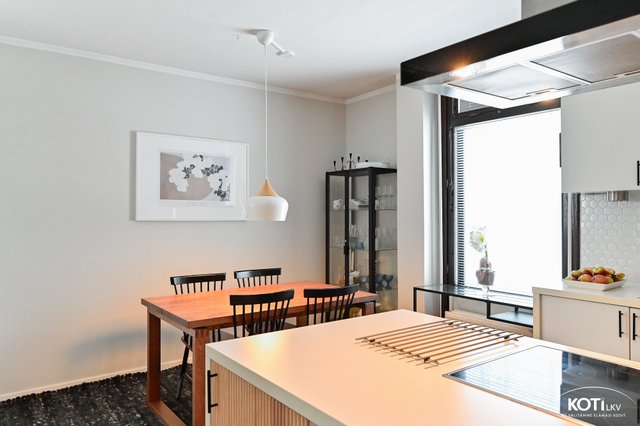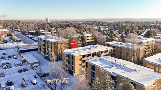 Sijainti on mitä parhain! Lähipalvelut löytyvät vain muutaman sadan metrin päästä Kuitinmäestä ja Keskuspuiston hyvät lenkkipolut lähtevät lähes kotiovelta. Kauppakeskus Iso Omena sekä metroasema sijaitsevat Matinkylässä noin 1,5 km päässä.