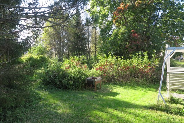 - Hoidettu piha ja puita ja pensaita runsaasti