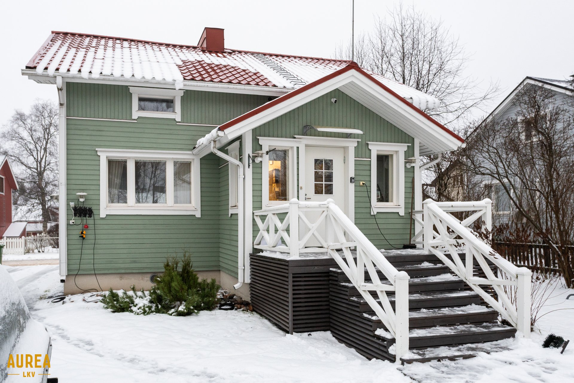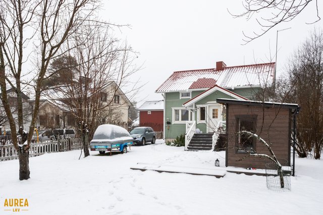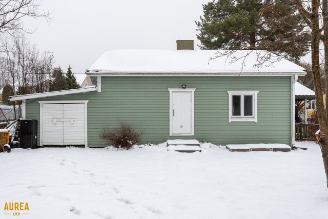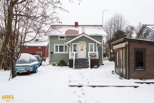 Tämä kodikas talo on rakennettu vuonna 1948 ja se on päivitetty viime vuosina, viimeisin laaja peruskorjaus tehtiin vuonna 2002. Pohjaratkaisu on järkevästi muokattu, ja alakerrasta löytyvät valoisa olohuone-keittiö, jossa on kaunis puolipönttöuuni. Alakerrassa on yksi makuuhuone sekä kylpytilat, missä tilava kylpyhuone, sauna. ja wc.