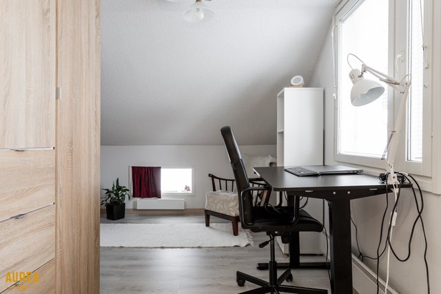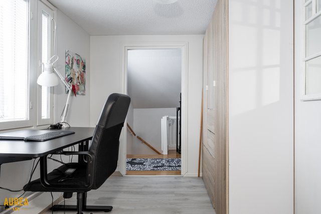 - Kaapistot ja hyllyköt yläkerrassa pieni varastohuone.