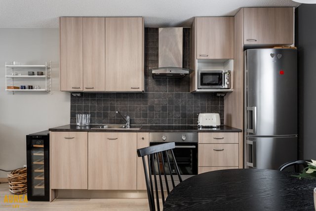 - Jääkaappipakastin, uuni, liesi, liesituuletin, ja astianpesukone