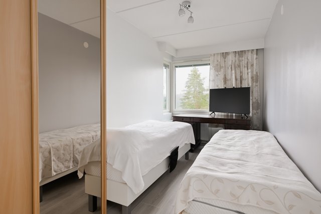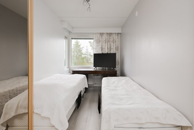 Tässä on tilava ja valoisa 75,5 neliömetrin asunto Jyväskylän Pupuhuhdassa, Kangasvuoren alueella. Tämä ylimmän kerroksen asunto tarjoaa upeat näkymät. Asunnossa on kaksi makuuhuonetta, avara olohuone ja keittiö.
