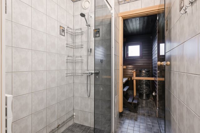 Oma sauna tuo arkeen ripauksen luksusta. Erillinen wc tuo käytännön helppoutta.