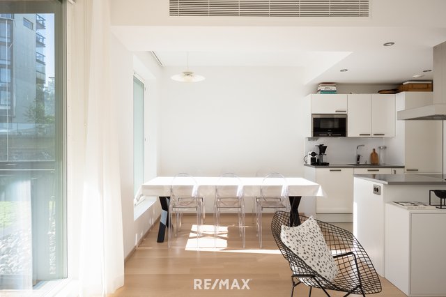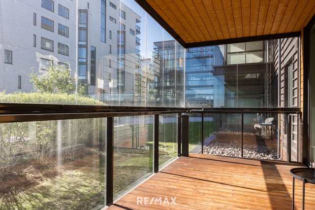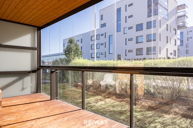 Asunnossa on avokeittiö, ja olohuoneesta on käynti lasitetulle parvekkeelle, jolta avautuu näkymä sisäpihalle. Makuuhuoneessa on iso ikkuna pihan suuntaan. Tilava ja moderni kylpyhuone tarjoaa hyvin säilytystilaa.