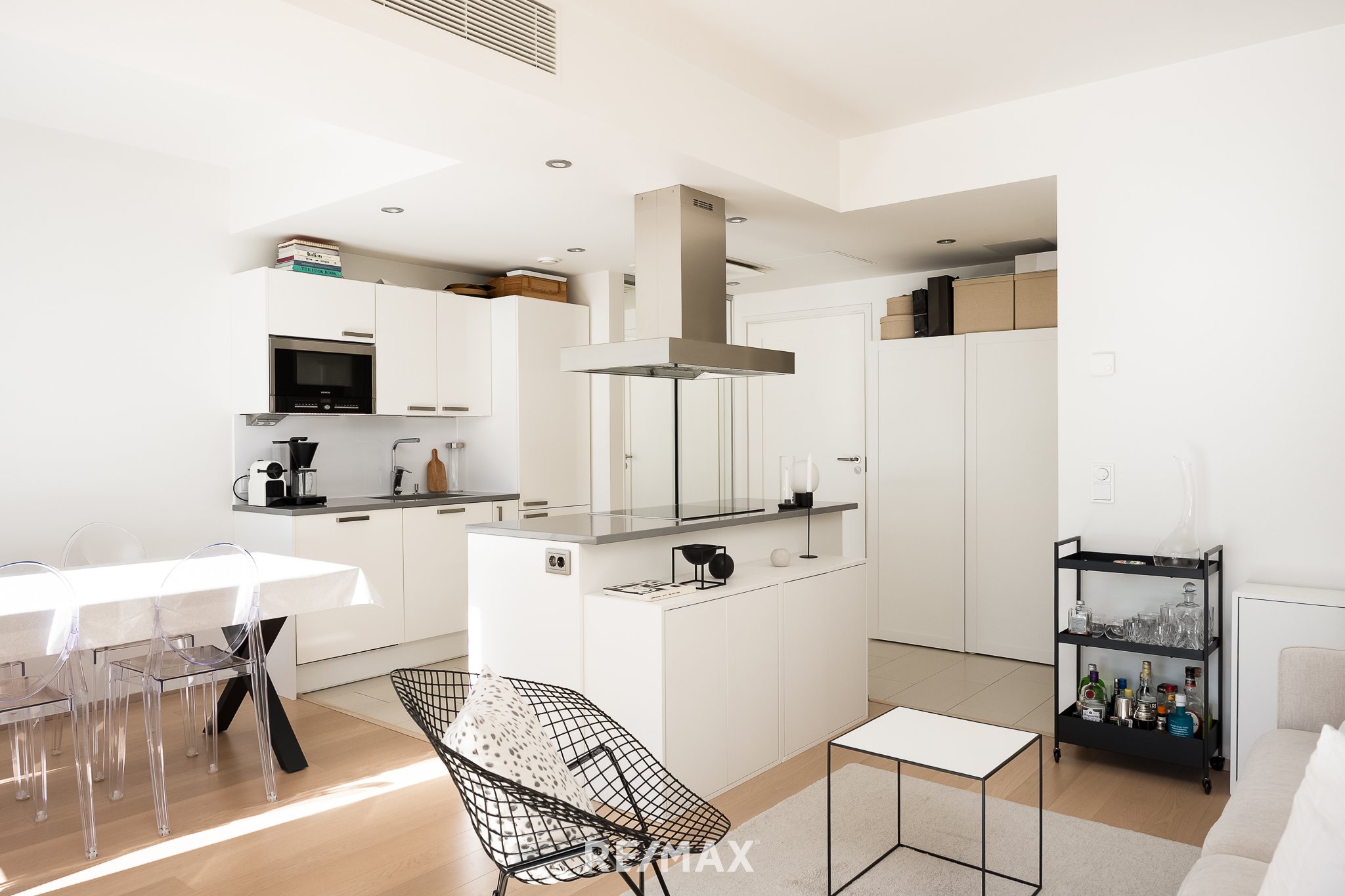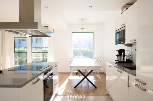- Jääkaappipakastin, uuni, liesi, liesituuletin, astianpesukone, keittiösaareke, ja mikroaaltouuni