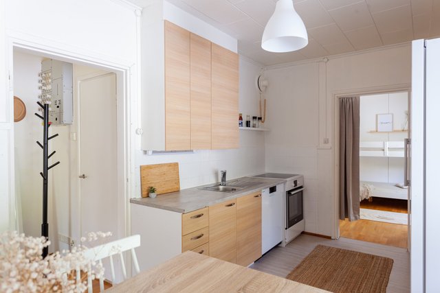 - Keittiötä on päivitetty, ja se soveltuu hyvin arjen tarpeisiin.