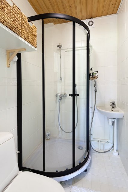 Asuinkerroksen wc-tilaa remontoitu 2000-luvun alussa.