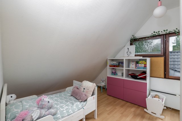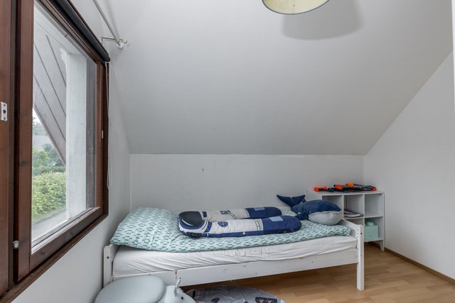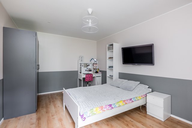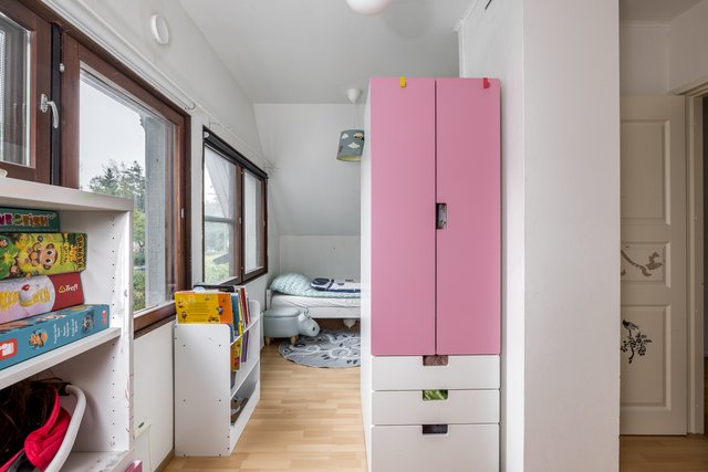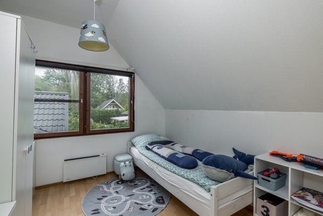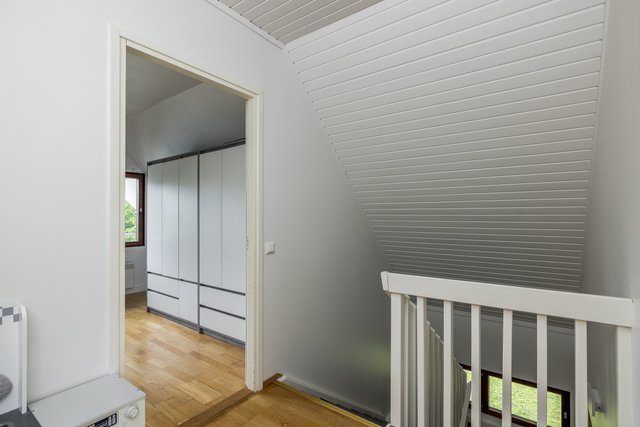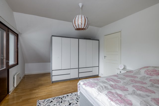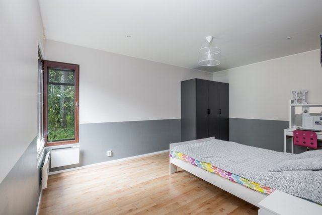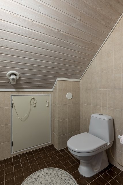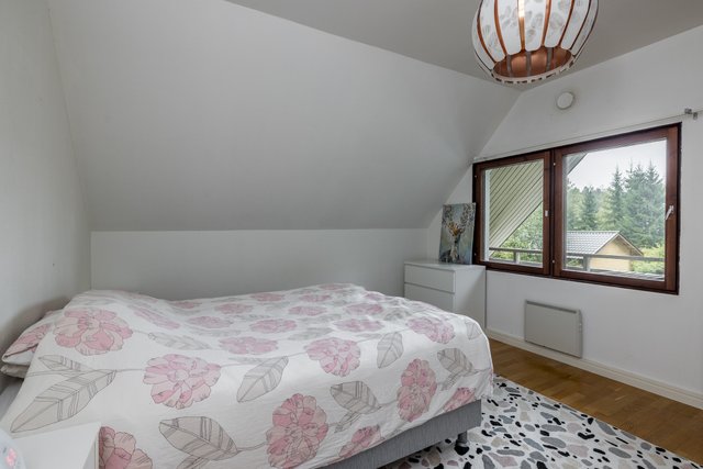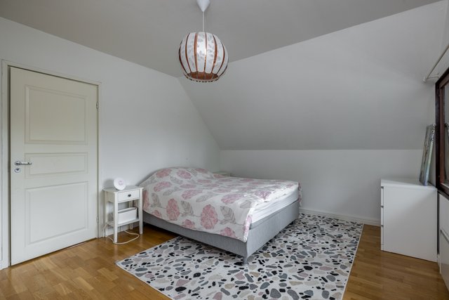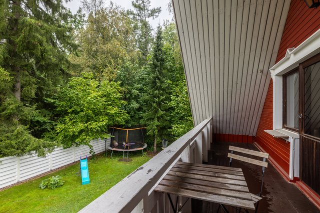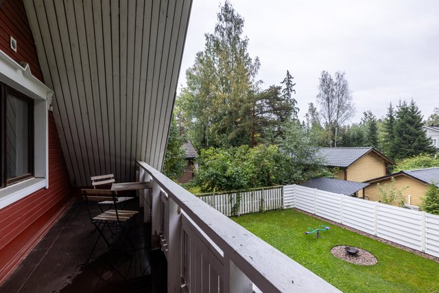 Yläkerrassa sijaitsee kaksi tilavaa makuuhuonetta. Toisesta on käynti katetulle parvekkeelle. Yläkerrassa on myös erillinen wc.