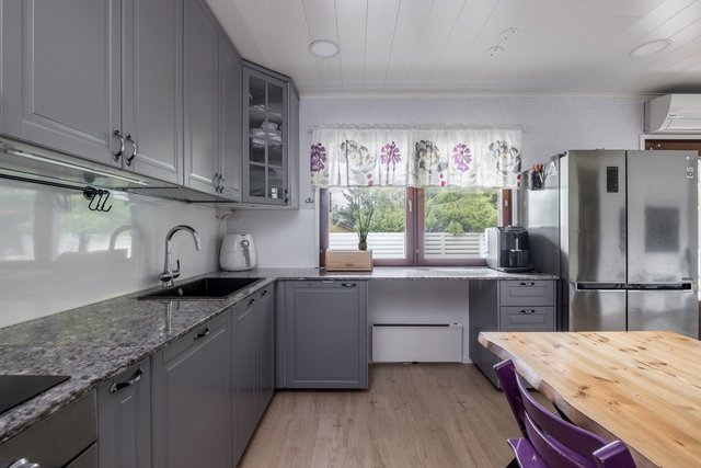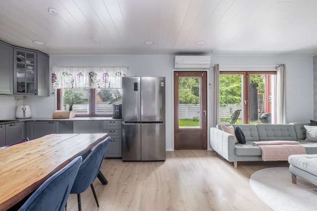 Talon sydämessä on 2021 remontoitu kivitasoinen keittiö, joka on varustettu moderneilla kodinkoneilla. Keittiö yhdistyy sulavasti olohuoneeseen, luoden rauhallisen tilan viettää aikaa tärkeiden ihmisten kanssa. Olohuoneesta on pääsy terassille ja omalle viihtyisälle pihalle. Pihaan mahtuu hyvin harrastamaan ja miksei myös leikkimään, lasten tai lemmikkien kanssa. Uima-allas, viherhuone, trampoliini tai toiveittesi puutarha, kaikki toteutettavissa.