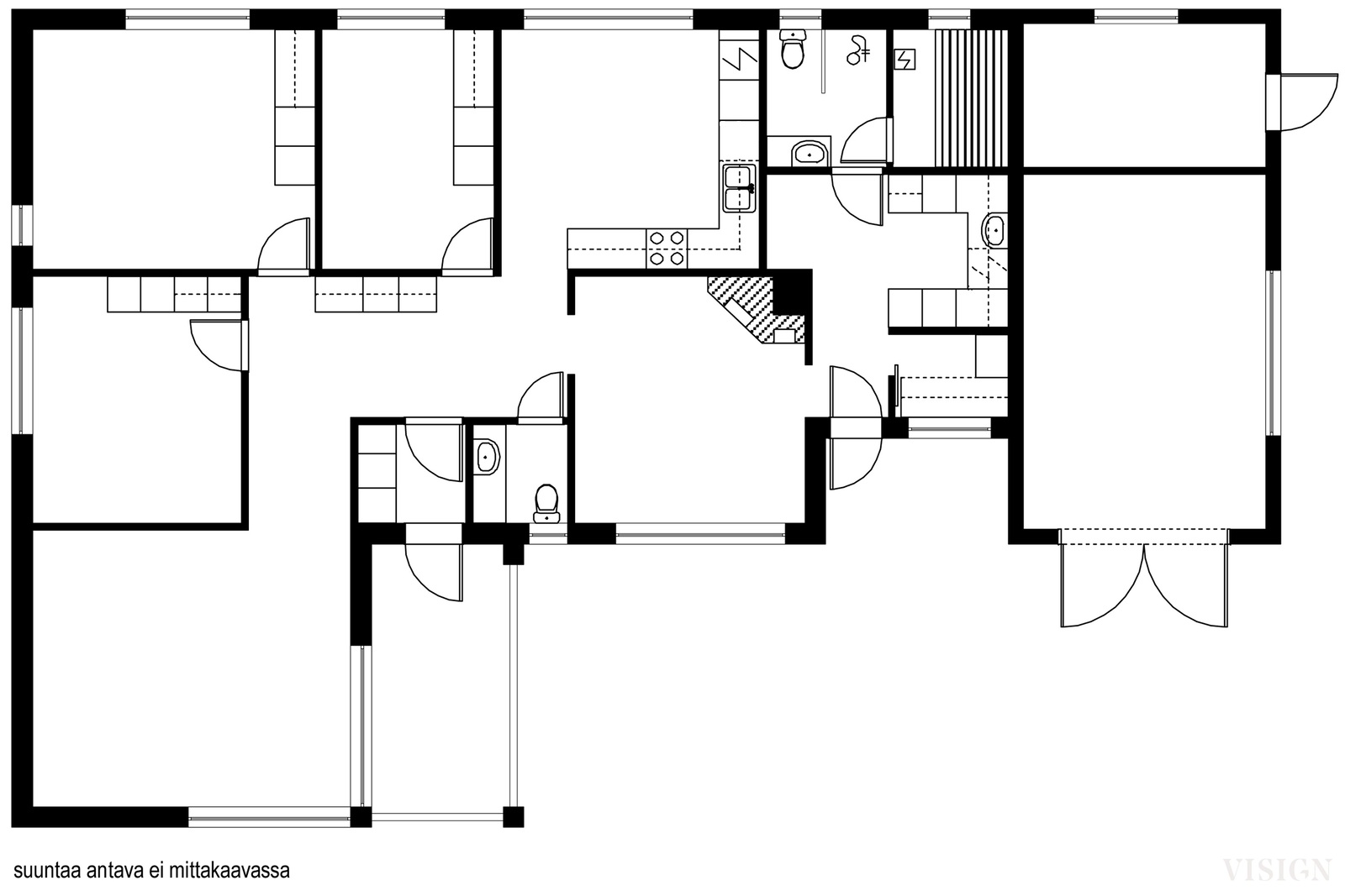 - Ilmoitettu pinta-ala on kerrosala. Pinta-alatieto saatu rakennuspiirustuksesta. Pinta-aloja ei ole tarkistusmitattu. Edellä mainittu pinta-ala saattaa tämän ikäisessä kohteessa poiketa olennaisestikin huoneiston nykyisten ja rakentamisaikaisen mittaustapojen ja standardien mukaan laskettavasta pinta-alasta.