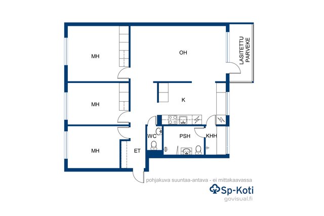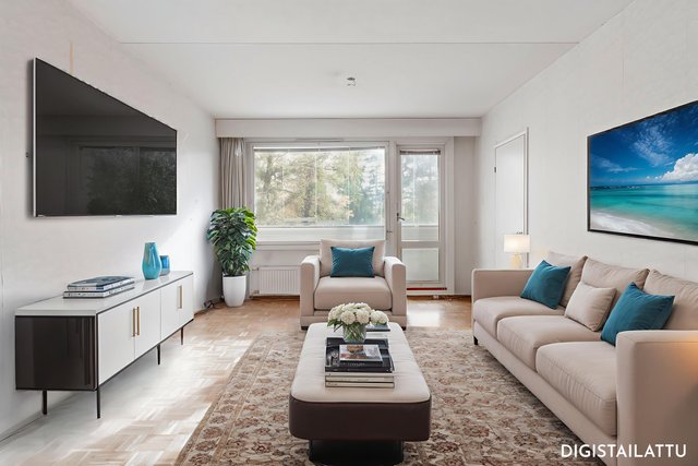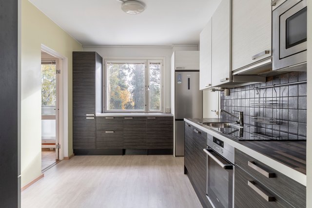 Tilava 95 m²:n asunto, joka tarjoaa erinomaiset puitteet perhe-elämälle. Asunto käsittää kolme makuuhuonetta. Keittiö on remontoitu vuonna 2019 ja kylpyhuone sekä WC ovat saaneet uuden ilmeen tänä vuonna linjasaneerauksen yhteydessä. Tässä kodissa on myös isolla ikkunalla varustettu kodinhoitohuone.