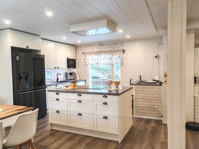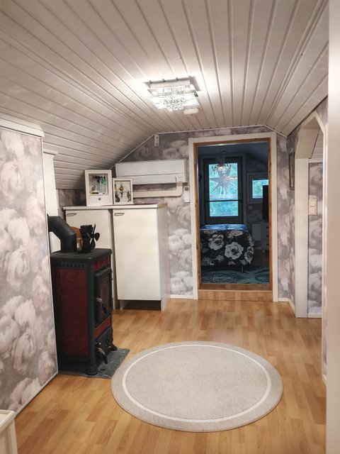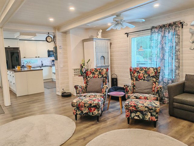 Kahdessa kerroksessa sijaitseva koti tarjoaa tilavat oleskelutilat sekä kaksi makuuhuonetta. Alakerrassa on tehty merkittäviä parannuksia vuosina 2018-2019. Keittiö on varusteltu nykyaikaisella induktioliedellä ja jääkaappipakastimella sekä puuhellalla, olohuoneessa tunnelmaa luo perinteinen takka.