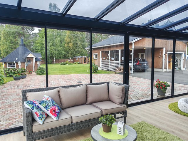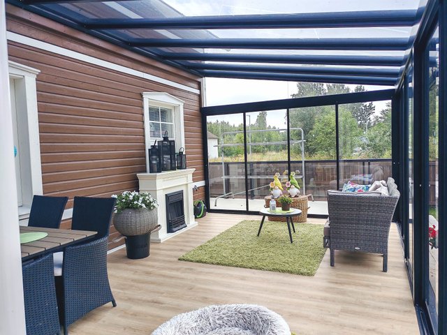 - Talon päädyssä avoterassi ja etuopihan puolella lasitettu terassi, jotka on rakennettu 2023.