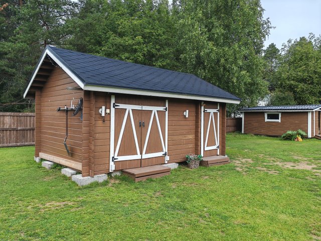 - Autotalli/ autokatos/ varasto rakennus, pihasauna, grillikota, varasto ja vaja.