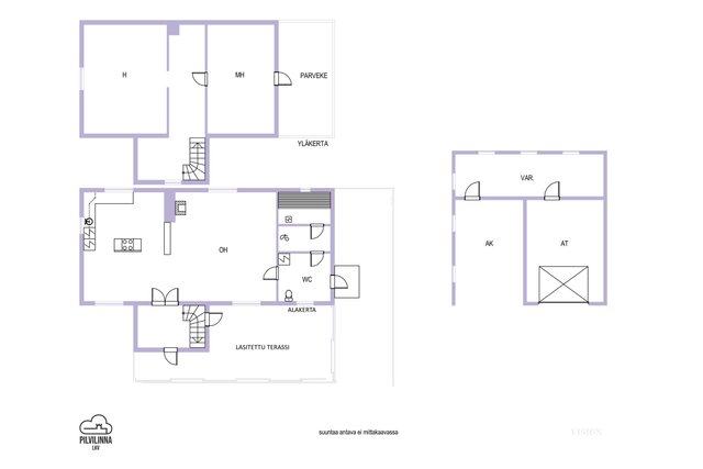 - Pinta-ala ei ole tarkistusmitattu ja todellinen pinta-ala voi olla suurempi tai pienempi, kuin ilmoitettu