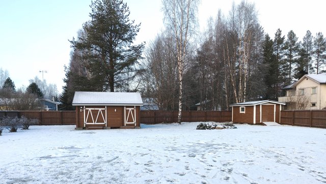 Pihapiiristä löytyy runsaasti lisärakennuksia, kuten autotalli, grillikota ja pihasauna, jotka tarjoavat monipuolisia mahdollisuuksia vapaa-ajan viettoon. Ympäri aidattu suojaisa ja turvallinen pihapiiri on varmasti mieleen lapsiperheille sekä koiraharrastajille.
