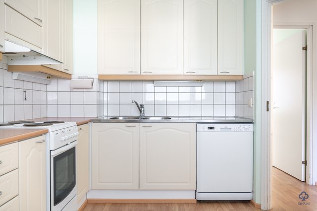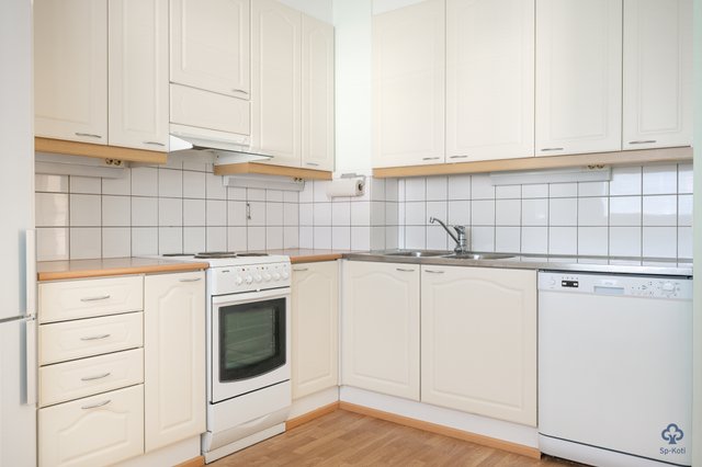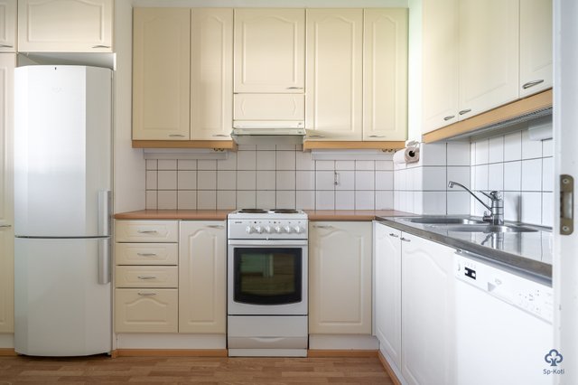 - Jääkaappipakastin, uuni, liesi, liesituuletin, ja astianpesukone