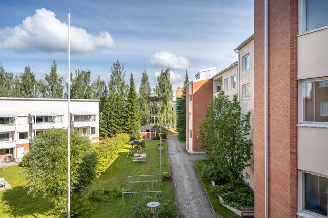 Olohuoneesta on käynti lasitetulle parvekkeelle, josta avautuu näkymä Puusepän puistoon. Erillinen keittiö sekä tilava makuuhuone tekevät tästä kodista toimivan. Pohjaratkaisu palvelee hyvin niin yksinasujaa, pariskuntaa kuin pientä perhettäkin.