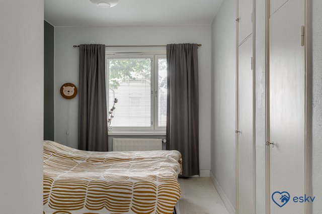 - Kaksi hyvän kokoista makuuhuonetta. Molemmissa makuuhuoneissa ajan henkeen kuuluvat syvennetyt vaatekaapit. Toisessa makuuhuoneessa liukuovikaapisto.