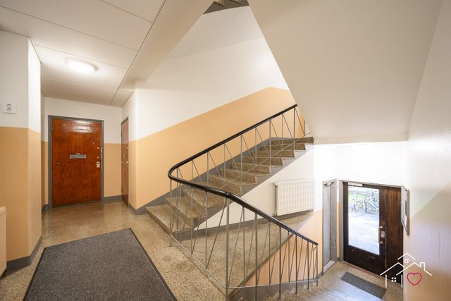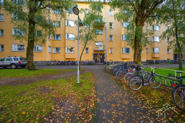 Taloyhtiö on valmistunut vuosina 1949-1951. Myytävässä huoneistossa on haluttu säilyttää alkuperäistä ilmettä. Keittiön kaapistot ovat alkuperäiset sekä olohuoneen seinäkaappi. Tämän kodin puulattiat ja maalatut seinät luovat lämpimän ja kodikkaan tunnelman. Makuuhuoneessa on runsaasti säilytystilaa alkuperäisen kaapin sekä myöhemmin lisättyjen vaatekaappien ansiosta. Kylpyhuone on laatoitettu jälkeenpäin.