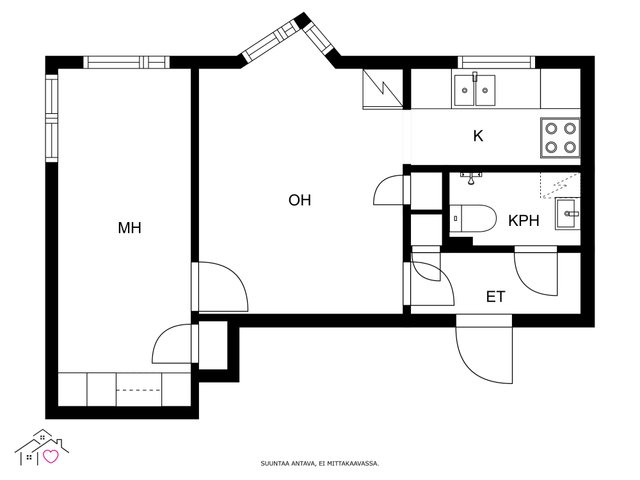 - Siisti osittain alkuperäiskuntoinen asunto, kylpyhuone jälkeenpäin saneerattu (ei tietoa uusimisvuodesta).