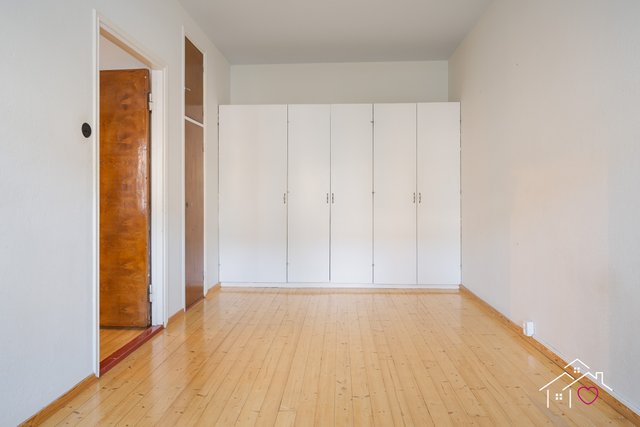 - Makuuhuoneessa on alkuperäinen vaatekaappi seinän sisässä + jälkeenpäin asennettu erillinen vaatekaapisto. Makuuhuoneen lattia on puuta ja seinät on maalattu.