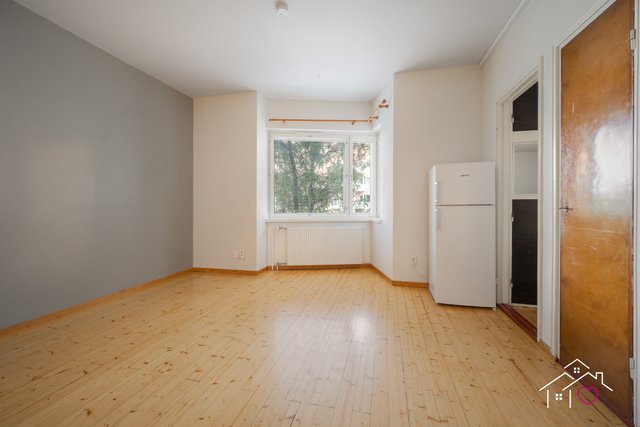 - Olohuoneessa on alkuperäinen seinäkaappi ja Point merkkinen jääkaappi/pakastin. Olohuoneen seinät on maalattu ja lattiat on puuta.