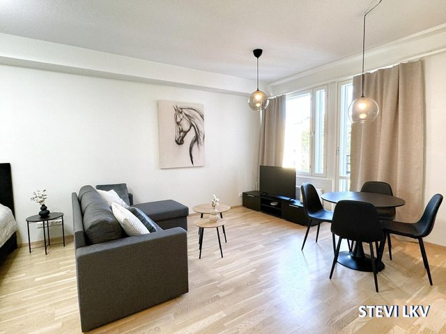 Asunto on mahdollista ostaa kalustettuna (asunto on ollut Airbnb-käytössä ja mahdollisuus jatkaa tätä toimintaa) tai tyhjänä ilman kalusteita.