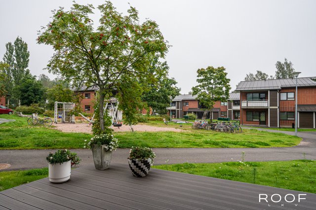 - Taloyhtiöllä vehreä puistomainen piha-alue, jolla leikkipaikkoja lapsille ja levähdyspaikkoja aikuisille.