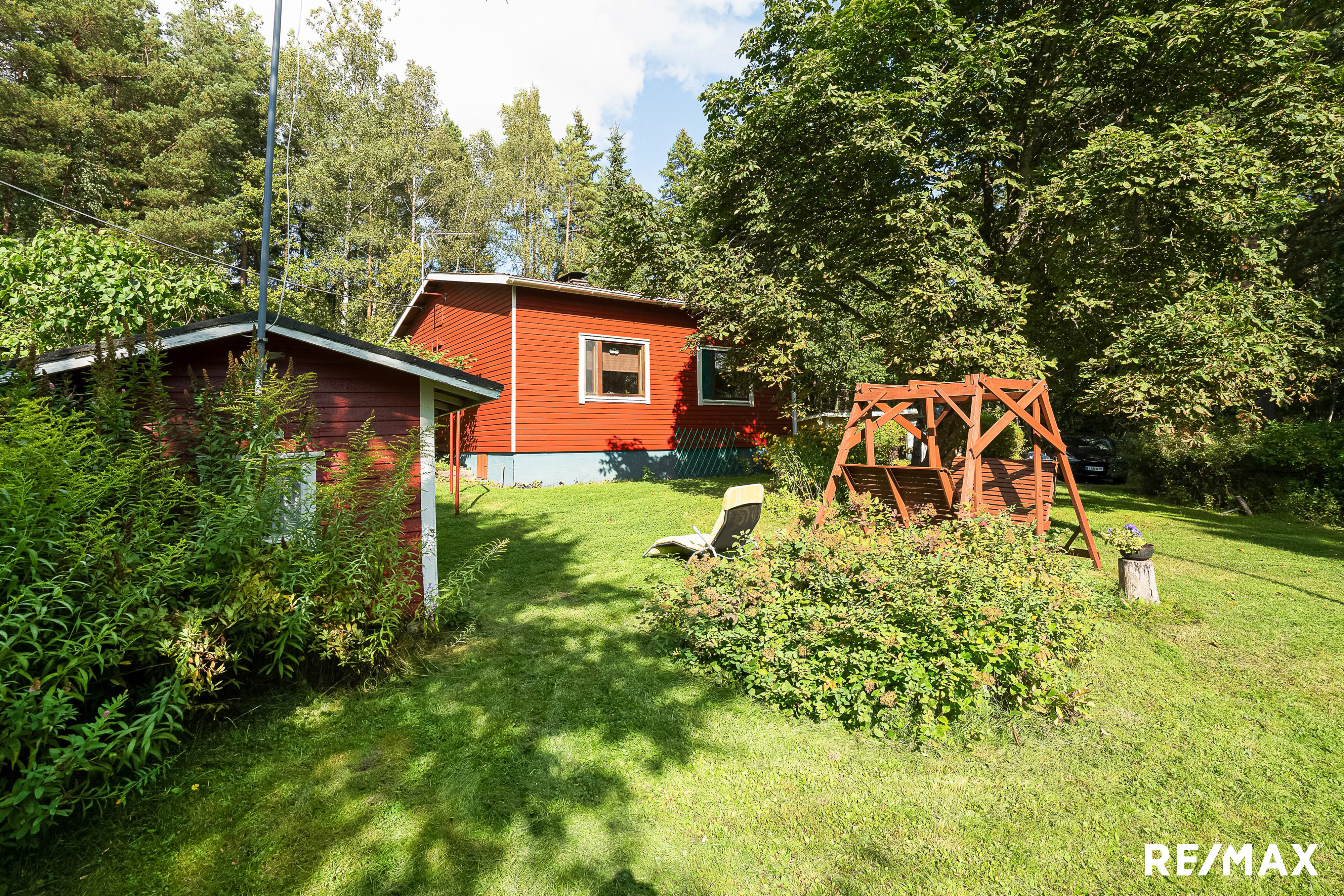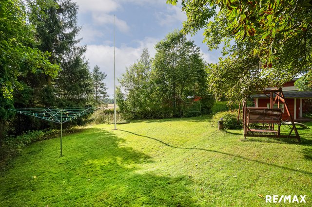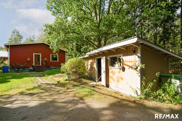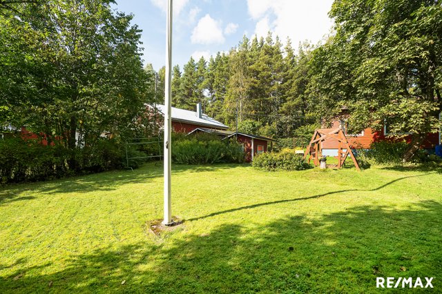 - Ruohonleikkuri, pihatyökaluja, matontamppausteline, jätesäiliö, lipputanko + lippu. Polttopuut kuuluvat kauppaan