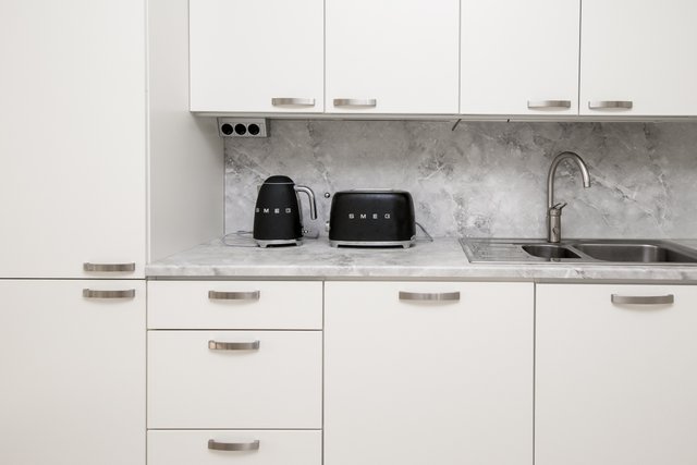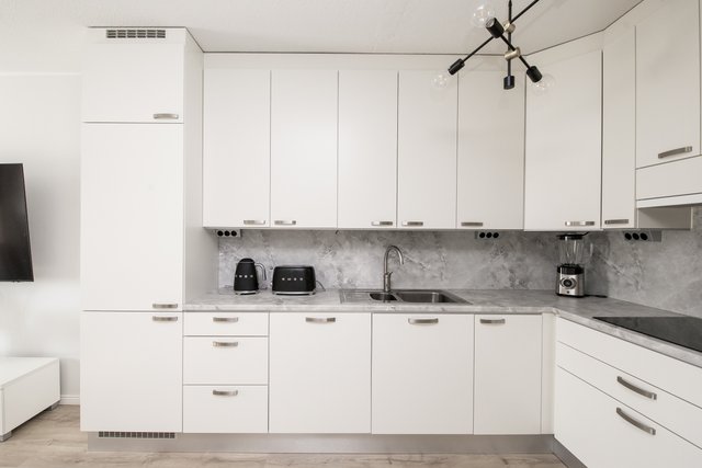 - Jääkaappipakastin (integroitu), astianpesukone (integroitu), erillisuuni, mikroaaltouuni, liesituuletin, ja liesi