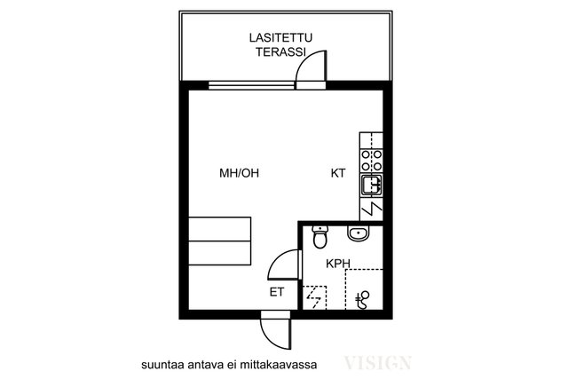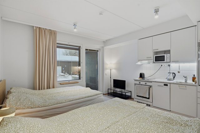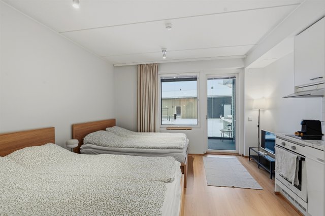 Vuonna 2023 valmistunut yksiö lasitetulla terassilla