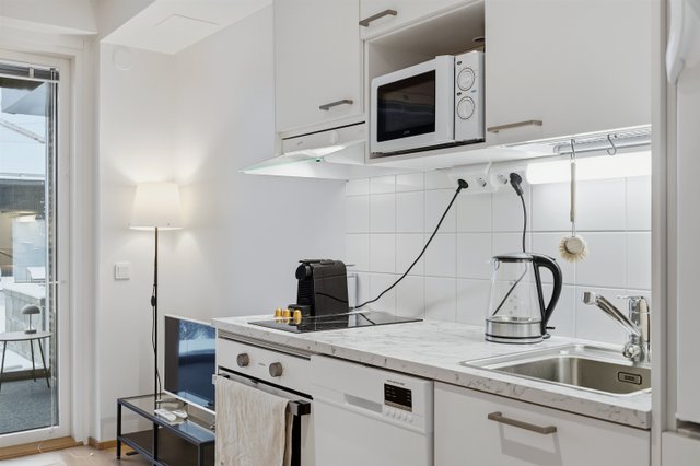 - Jääkaappi, uuni, liesi, liesituuletin, ja astianpesukone