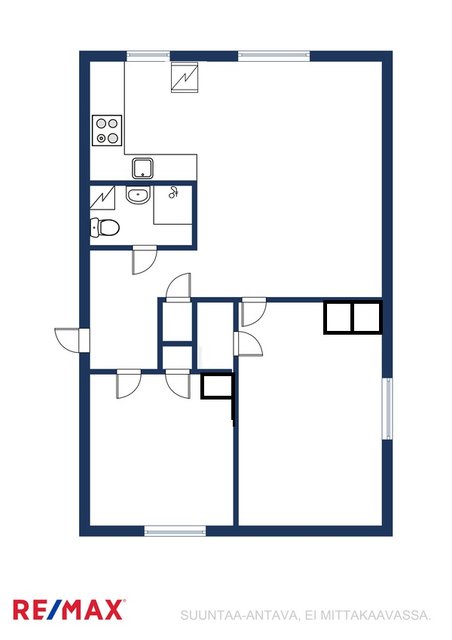 - Ei tarkistusmitattu. Pinta-alat saattavat tämän ikäisissä kohteissa (yhtiö rekisteröity ennen 01.01.1992) poiketa olennaisestikin asuinrakennusten nykyisten mittaustapojen ja standardien (SFS 5139) mukaan laskettavasta asuintilojen pinta-alasta. Pinta-ala voi siis olla edellä mainittua pienempi tai suurempi.