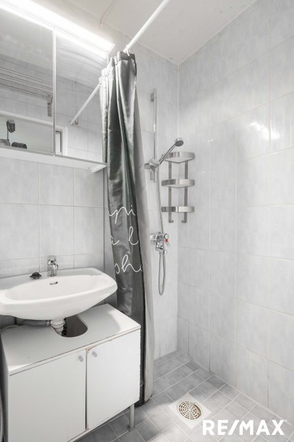- WC-istuin, suihku, peilikaappi, pesuallas, allaskaappi, bidee-suihku, ja pesukone