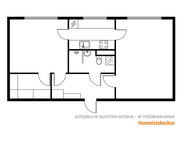 - Suihku, pesukoneliitäntä, wc-istuin, peilikaappi, ja kiinteät valaisimet