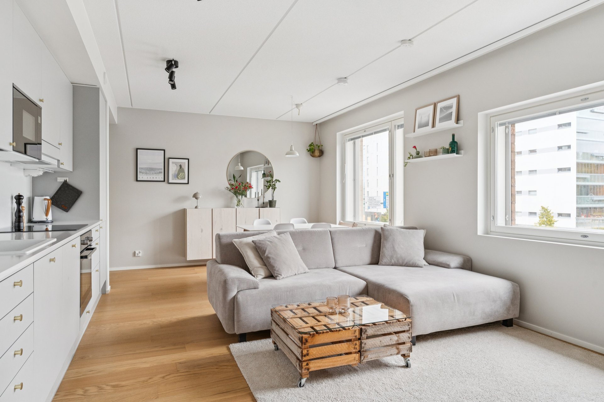Valoisa kolmio Espoon Niittykummussa vuonna 2023 valmistuneessa yhtiössä.  Täydellinen koti pariskunnalle tai pienelle perheelle.