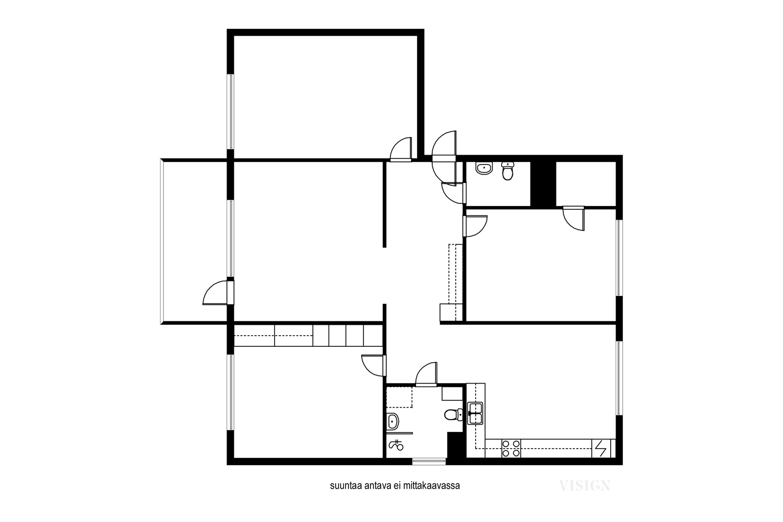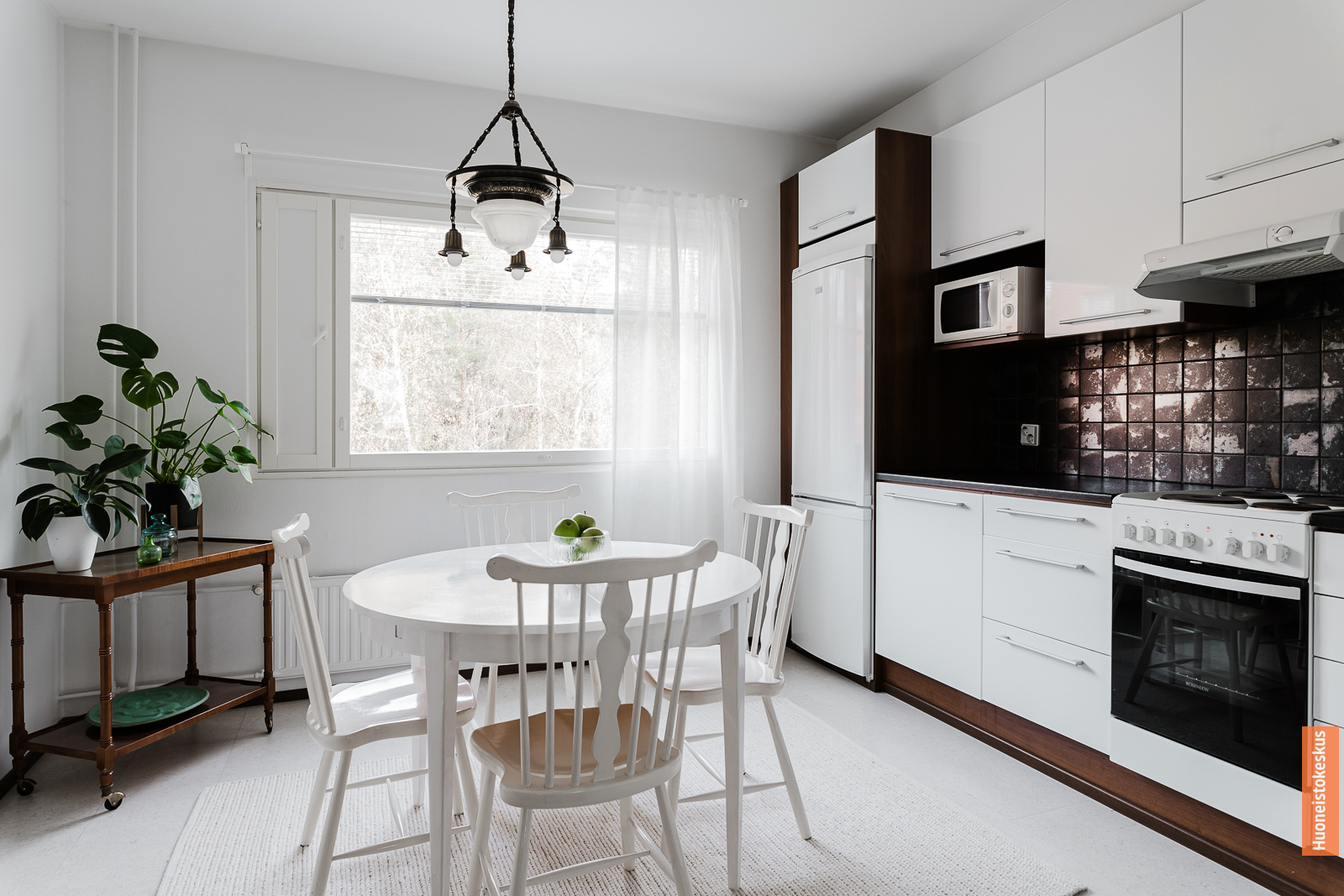 Tässä läpitalon huoneistossa valo kulkee kauniisti huoneesta toiseen. Ikkunat kahteen suuntaan sekä vaaleat pinnat tekevät kodista avaran ja kutsuvan. Yhtenäinen, pähkinänsävyinen parkettilattia luo tyylikkään ja yhtenäisen ilmeen eteisestä olohuoneeseen saakka. Yhtiöstä löytyy myös viihtyisät saunatilat.