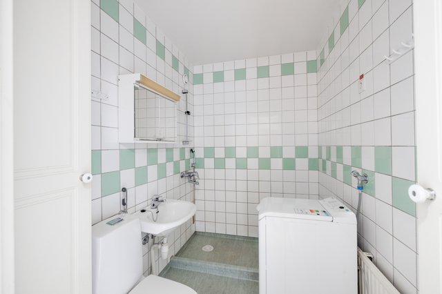 - Pesukone, wc-istuin, suihku, ja peilikaappi