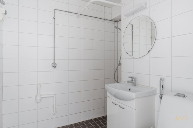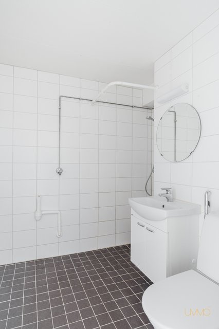 - WC-istuin, suihku, lattialämmitys, pesukoneliitäntä, pesuallas, peili, ja allaskaappi