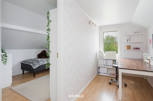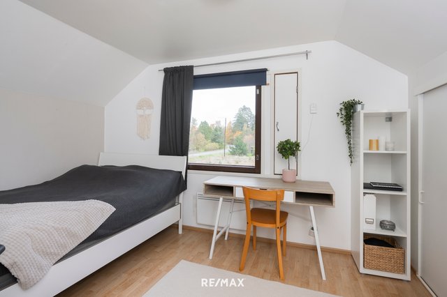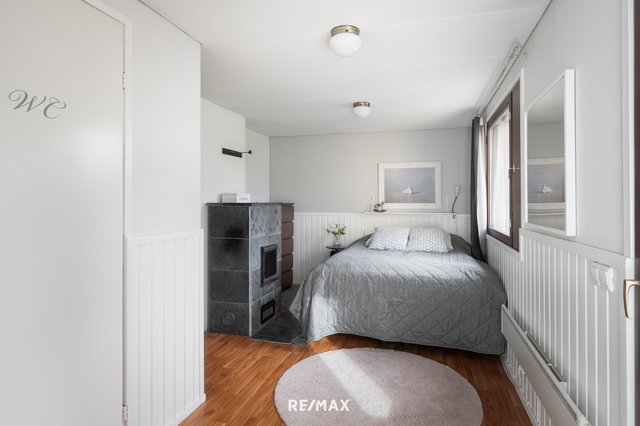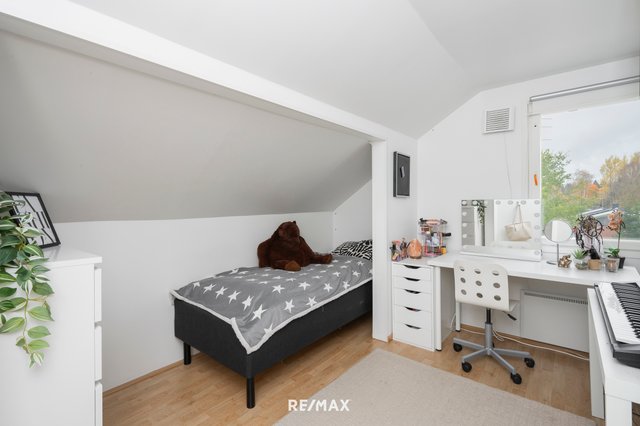 - Yläkerrassa on kaksi hyvänkokoista makuuhuonetta. Suurempi makuuhuone on jaettu kahteen osaan siten, että toinen puoli on toiminut askartelutilana ja toinen, johon kulku tapahtuu askartelutilan kautta, on ollut käytössä pienenä makuuhuoneena. Alakerran takkahuonetta on puolestaan hyödynnetty makuuhuoneena. Huoneet soveltuvat erinomaisesti monenlaiseen käyttöön ja muuntuvat tarpeiden mukaan.