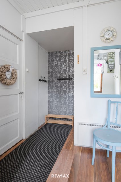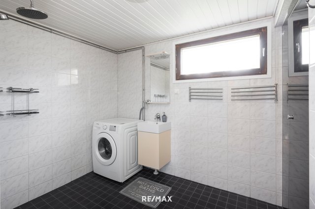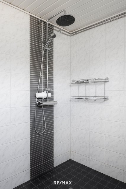 - Kylpyhuone on remontoitu vuonna 2013, ja se on tilava sekä käytännöllinen. Samassa yhteydessä sijaitseva sauna on uusittu samalla kertaa. Pesukoneelle on liitäntä, ja tilavuuden ansiosta kylpyhuoneeseen on mahdollista asentaa myös kuivausrumpu.